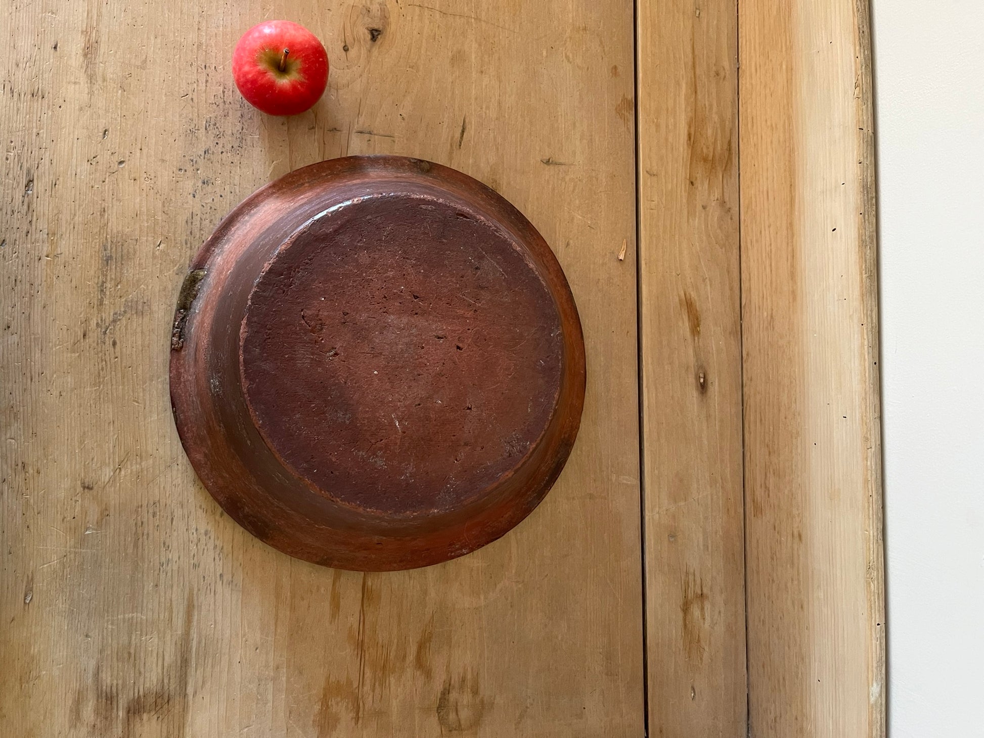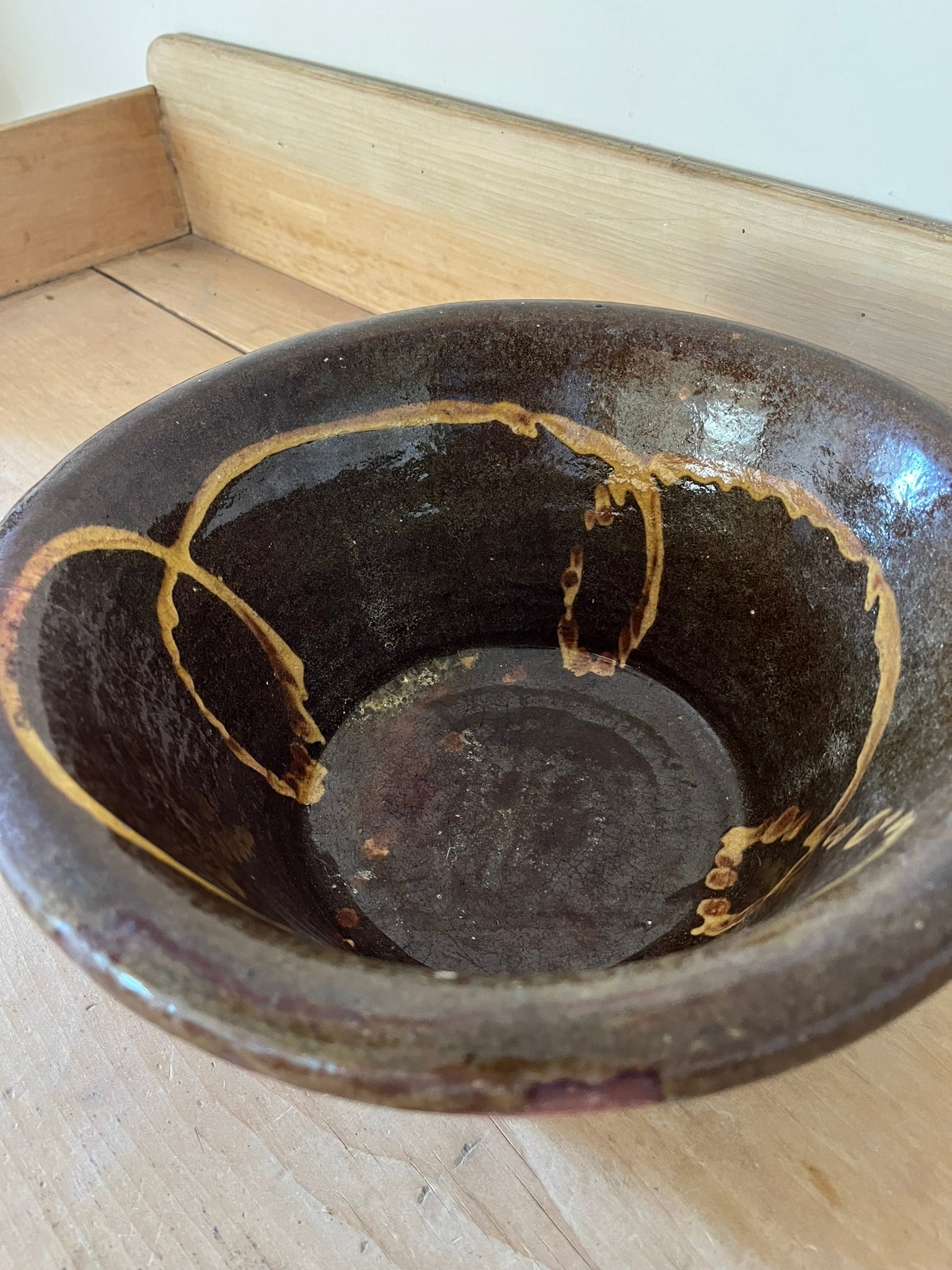 Large Irish vernacular slip-trailed bowl originally for dairy, washing food, etc.