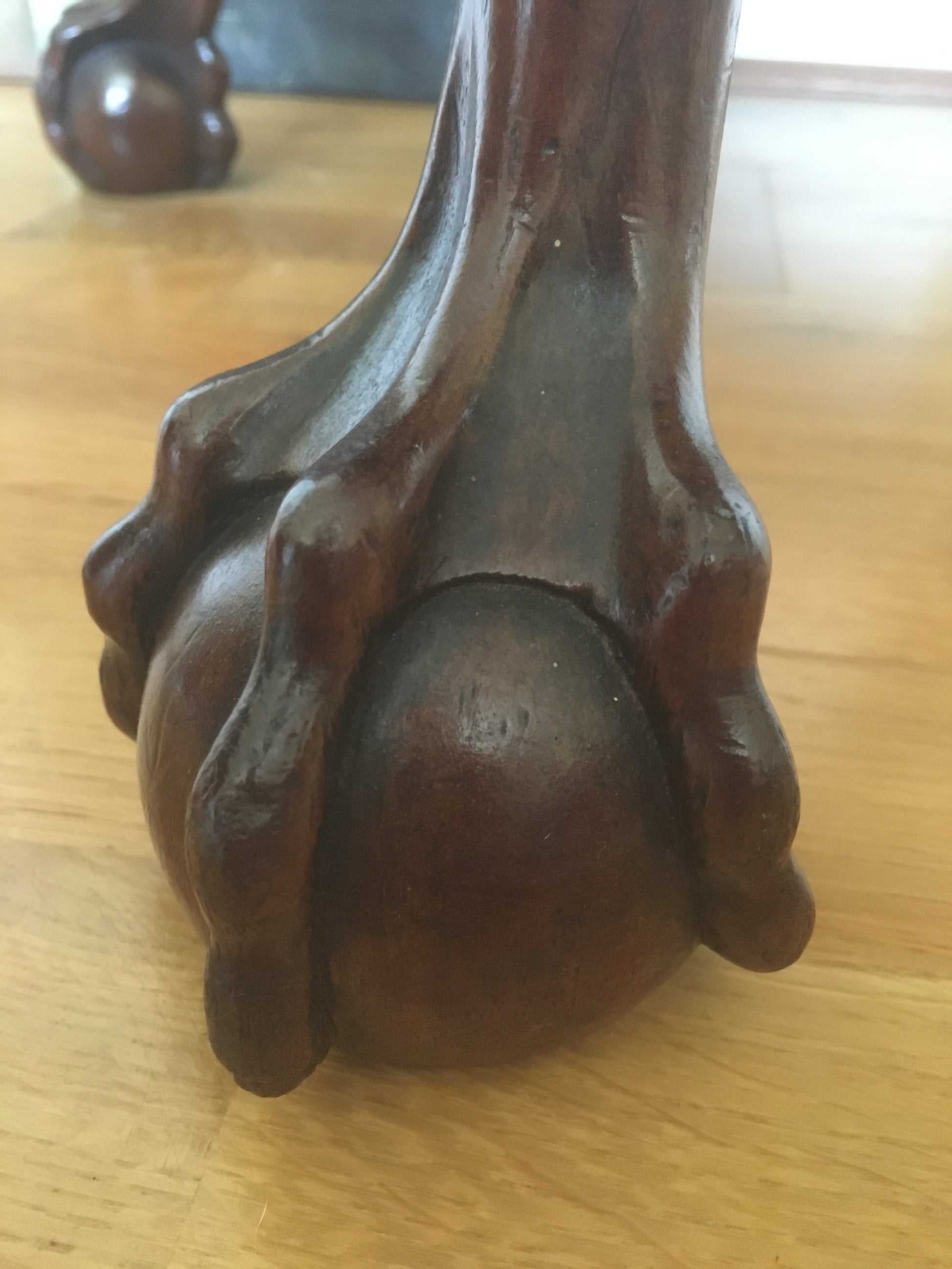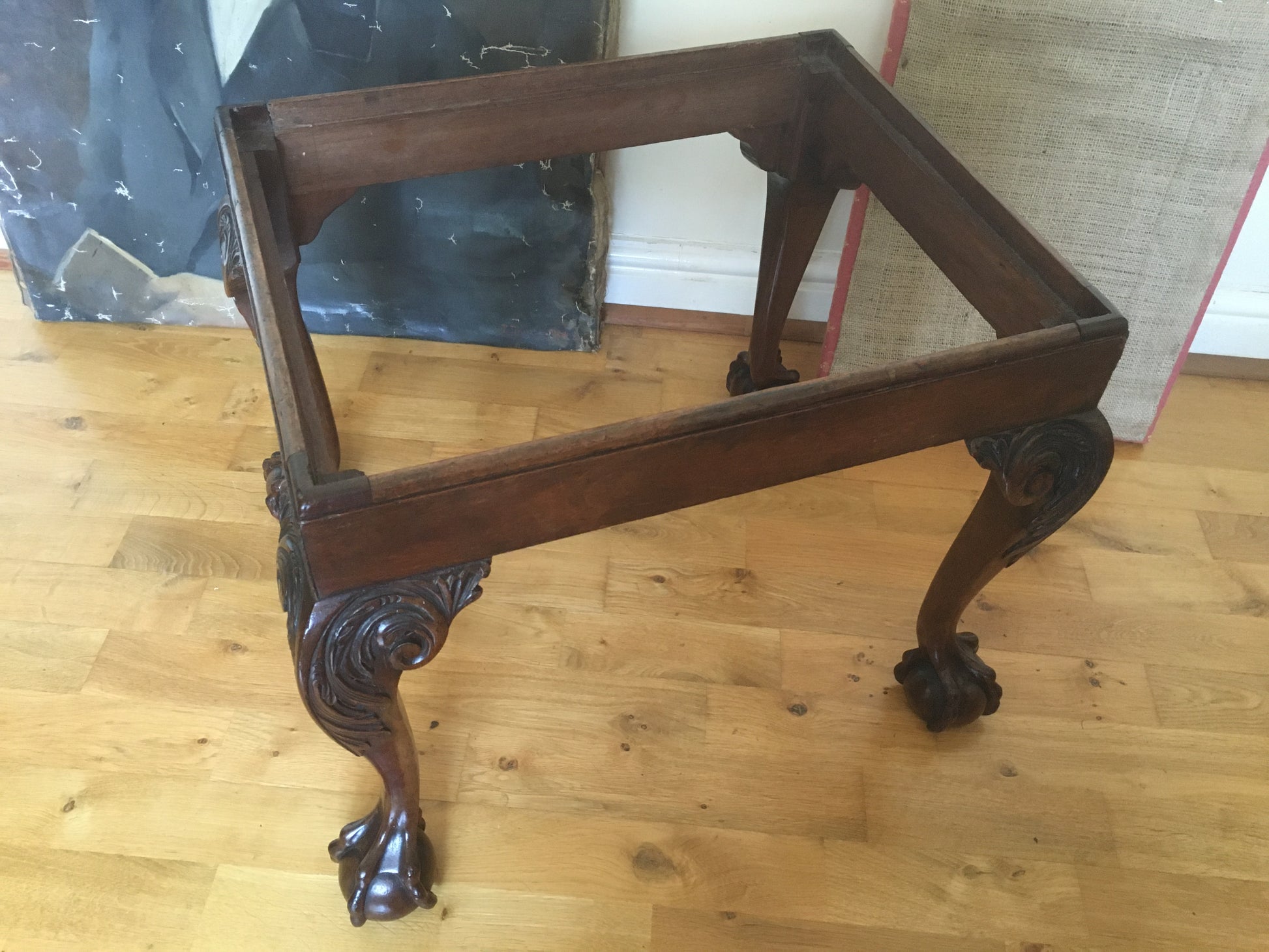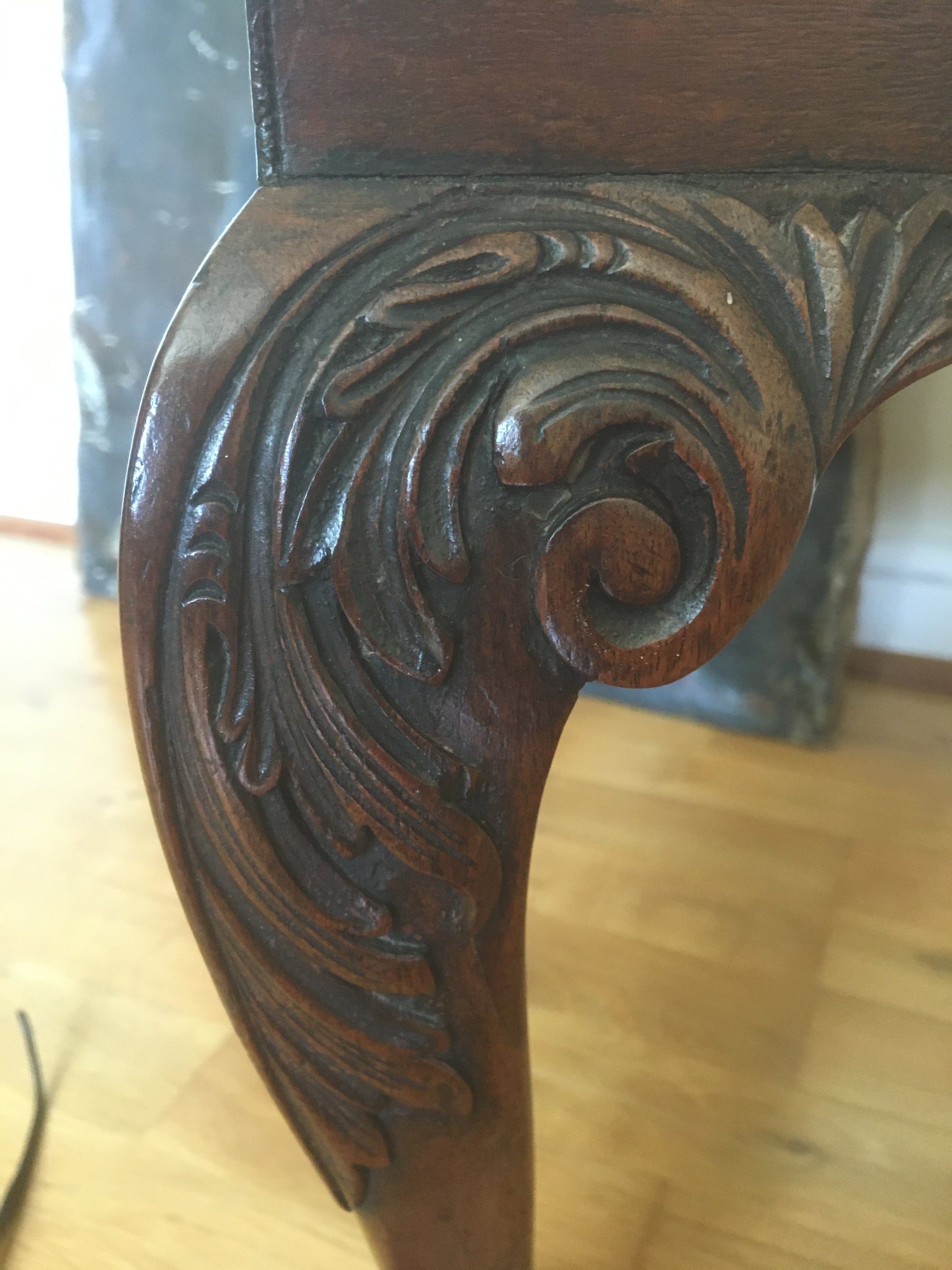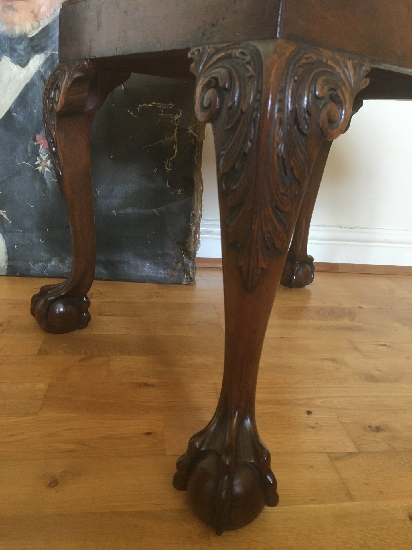 Raised on four cabriole legs with carved acanthus scrolls, ending in wonderfully detailed carved claw and ball feet.