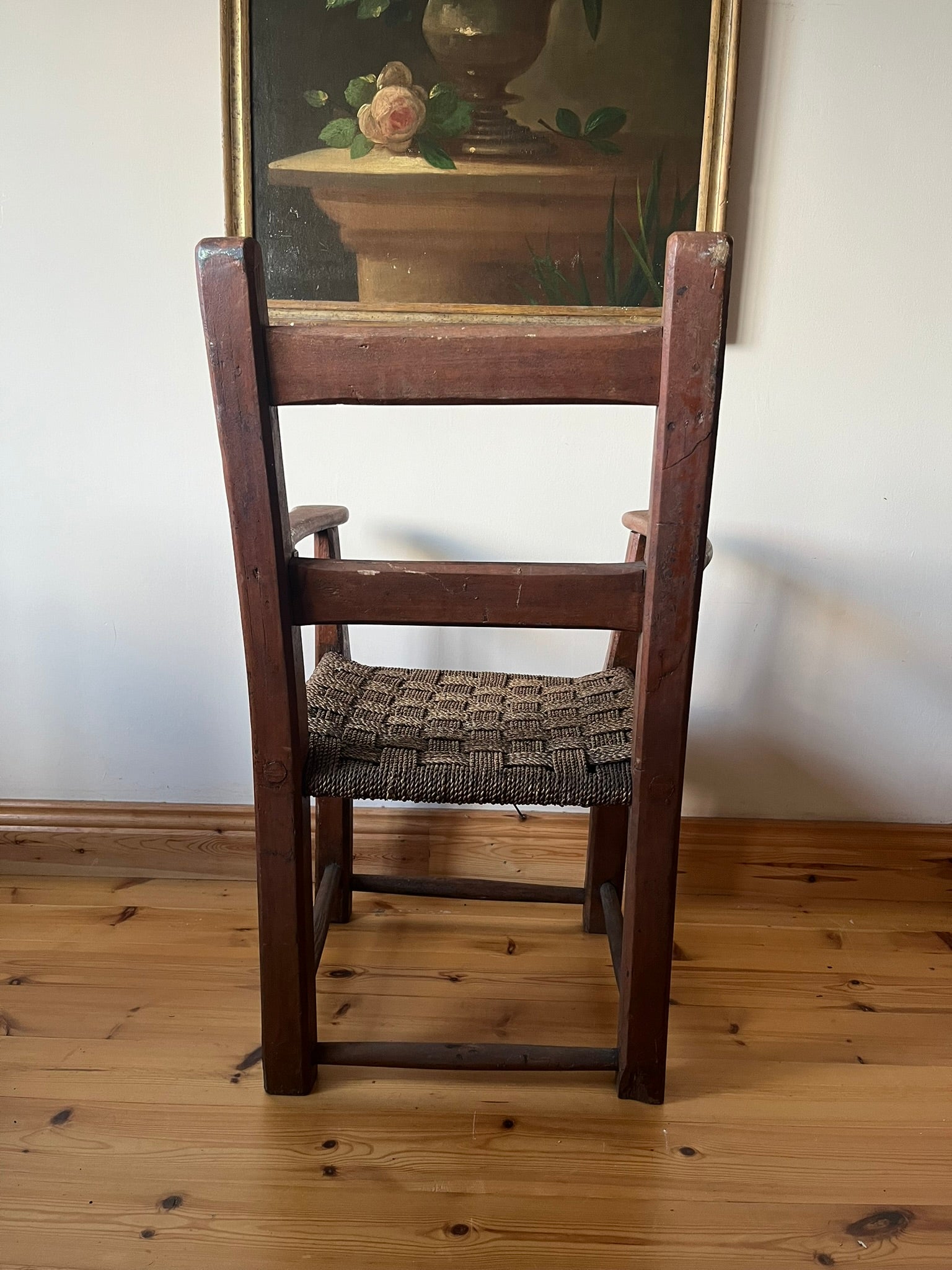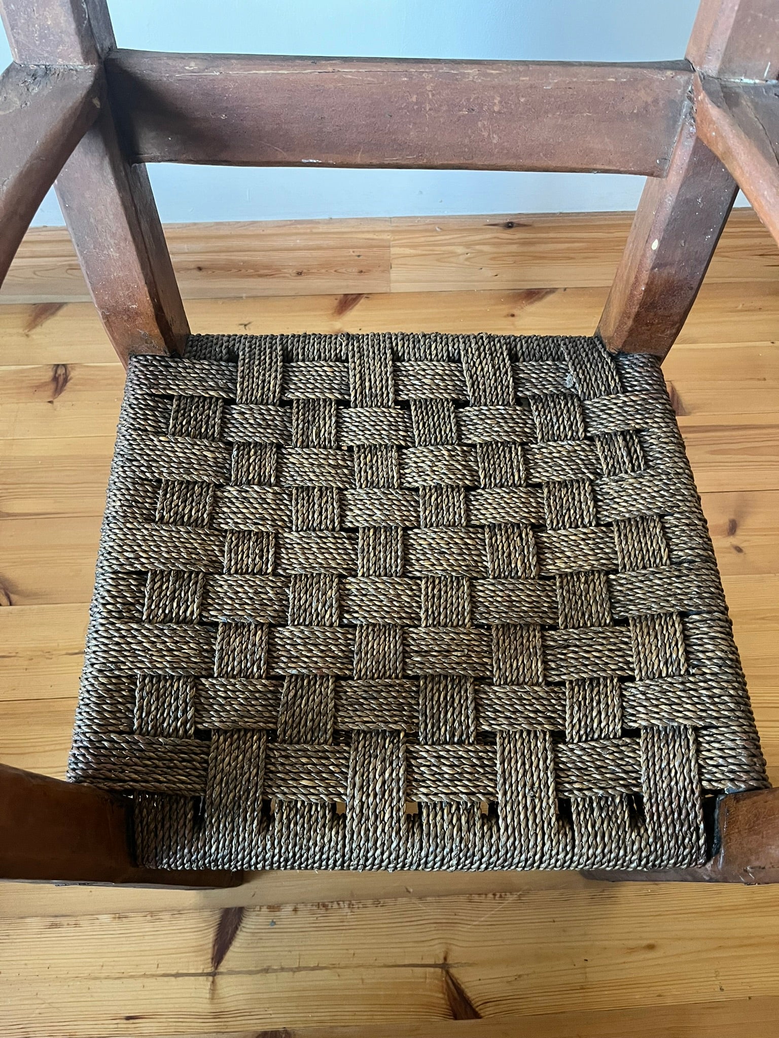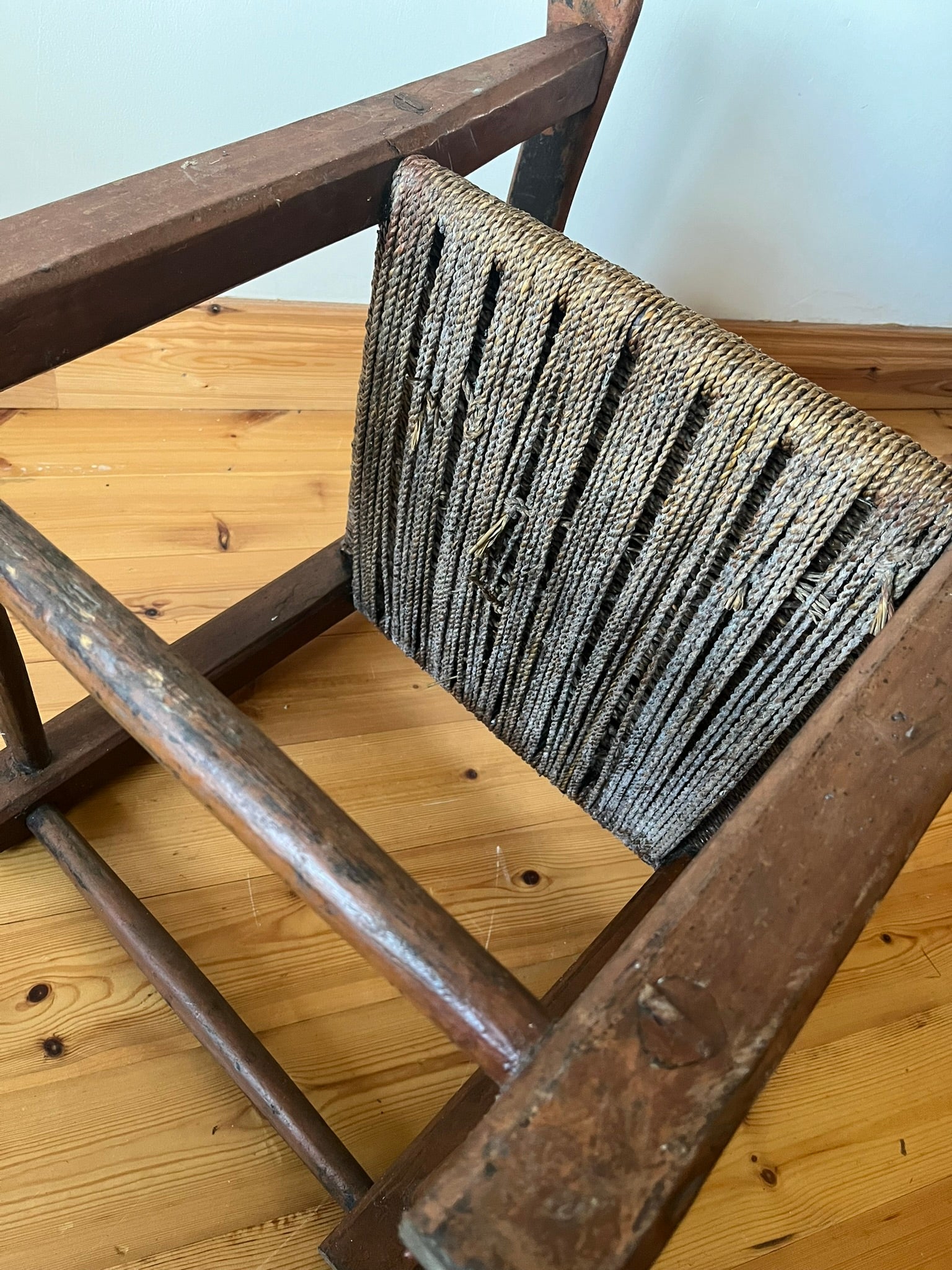 19th century Irish vernacular sugan (rope) armchair, very solid and sturdy, with visible through-wedges.