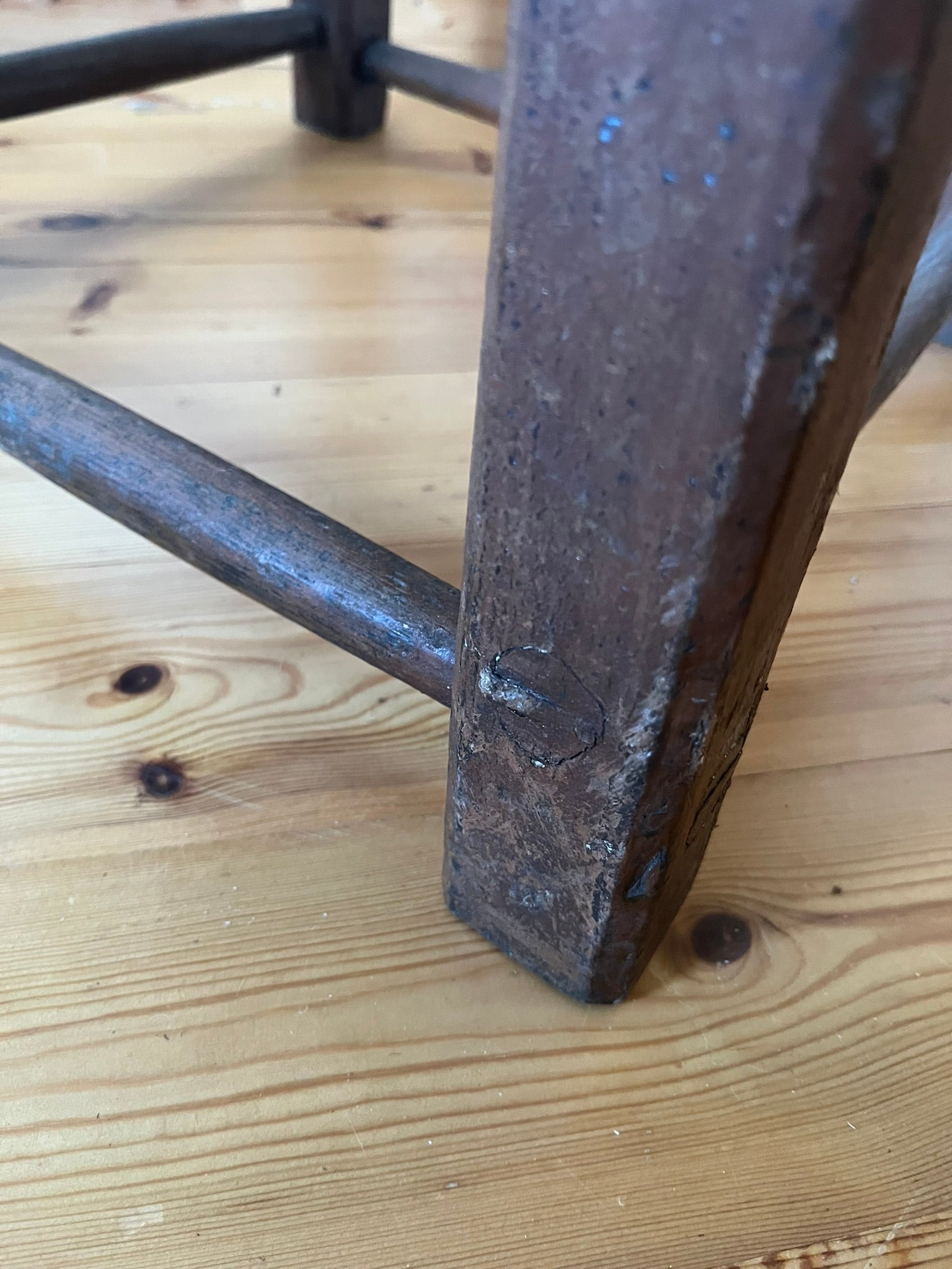Very historic possible repair to top left of back rest and small split to back of one armrest but of no consequence. See photos for more details.