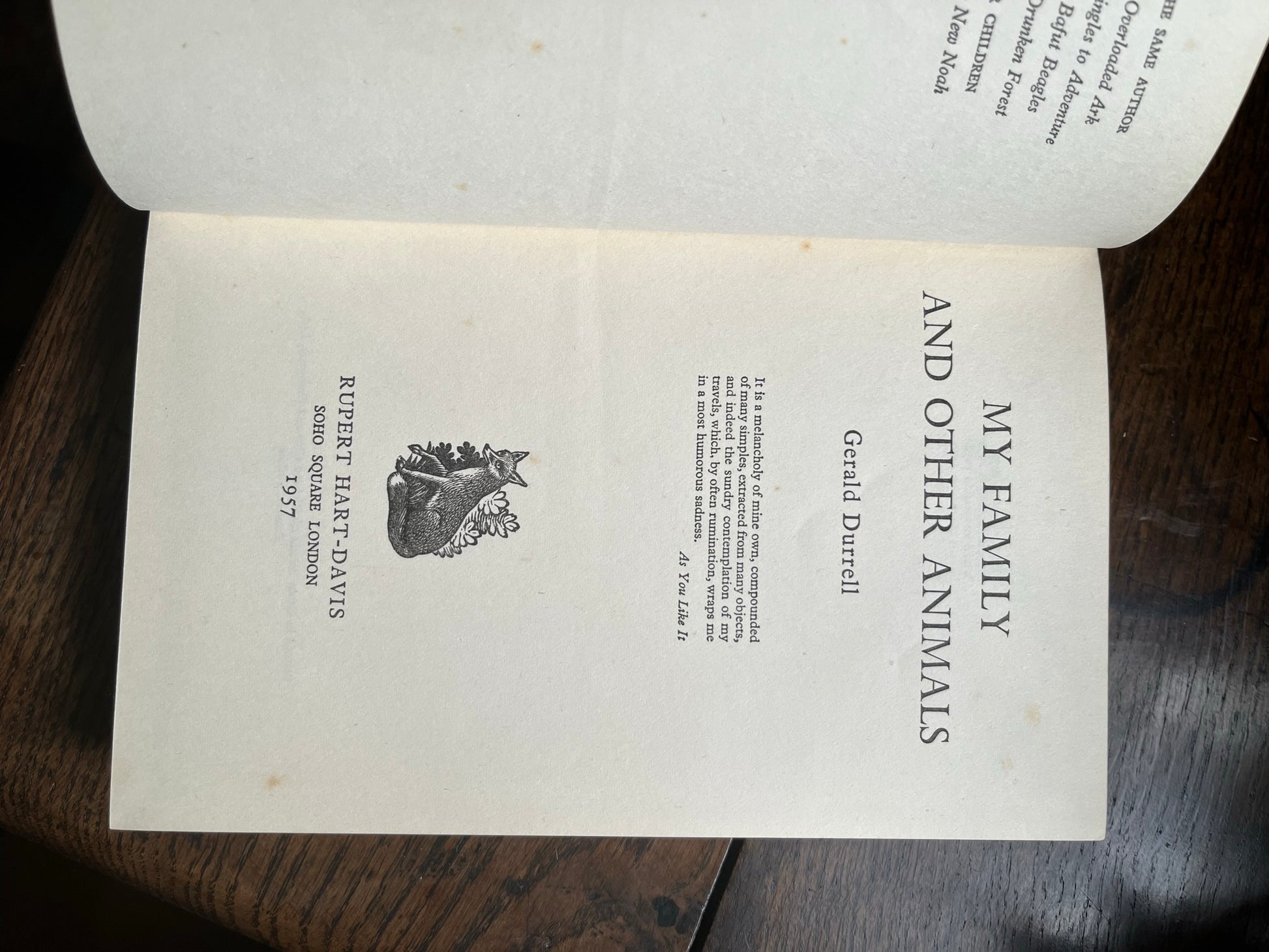 Fourth impression of First Edition, 1957, "My Family And Other Animals" by Gerald Durrell.