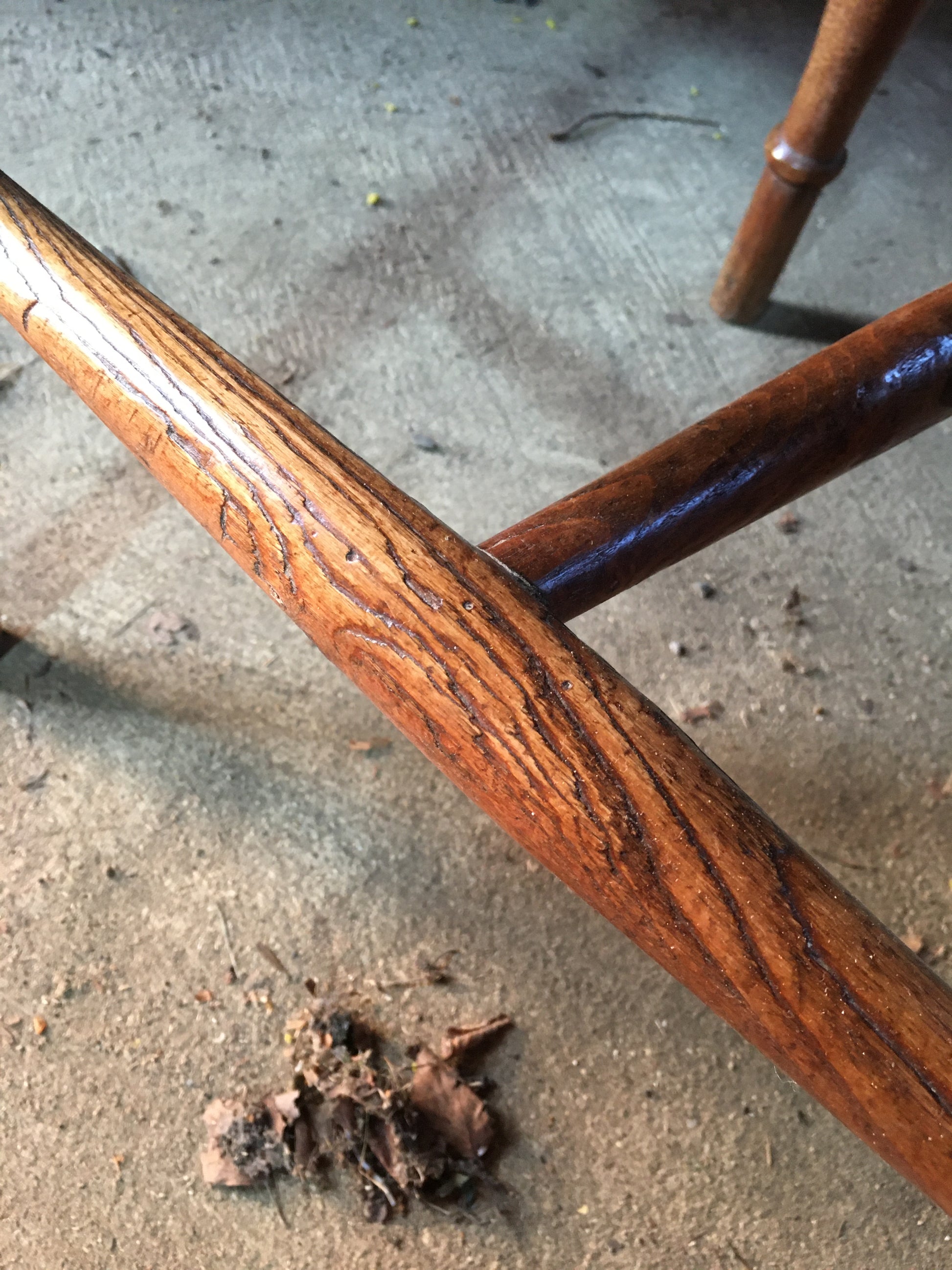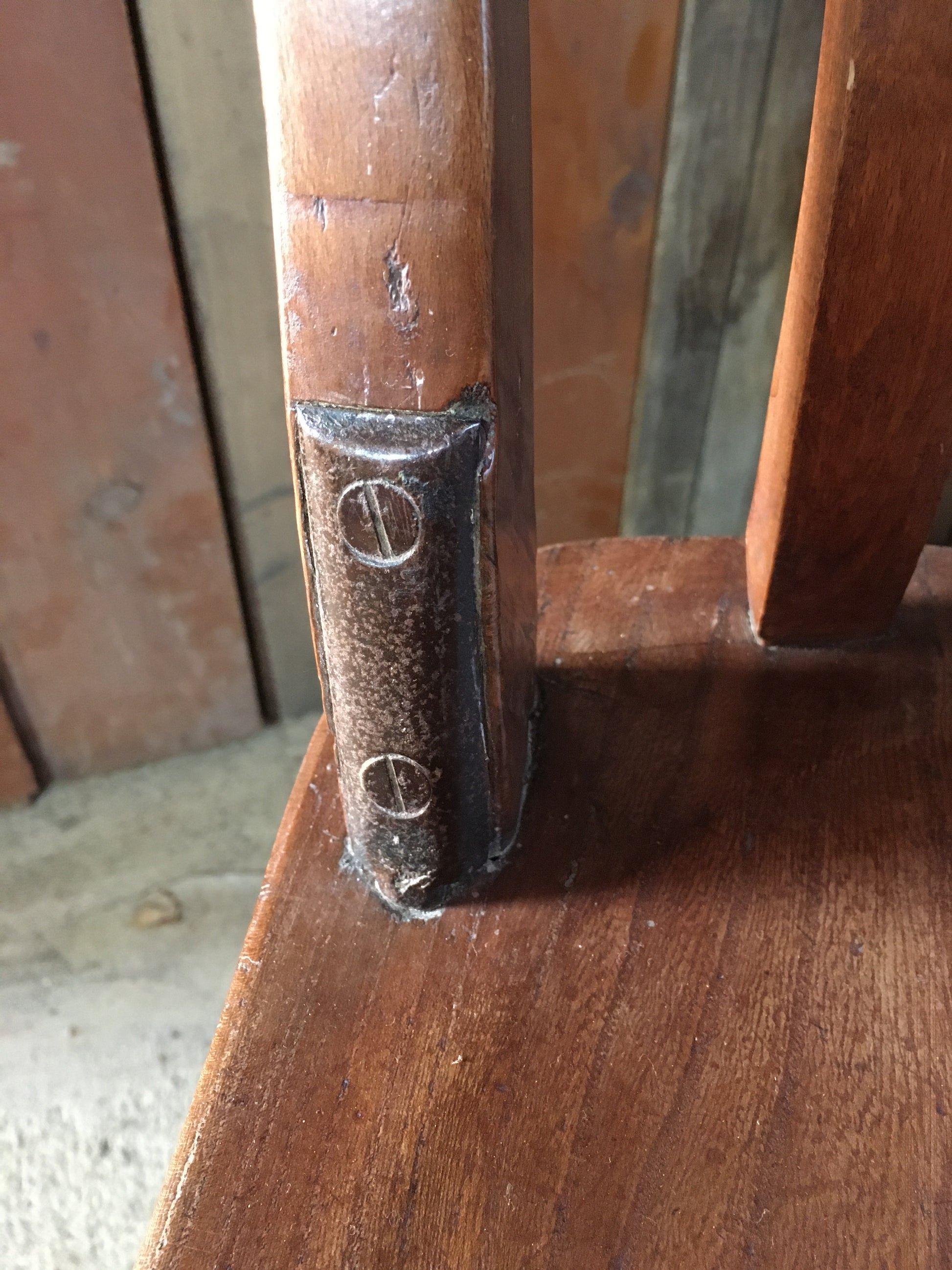 Condition is good for their age. One chair has a very historic steel bracket repair to one of the back supports, with a bolt underneath - so over the top and naïve I thought it worth keeping - see photos.