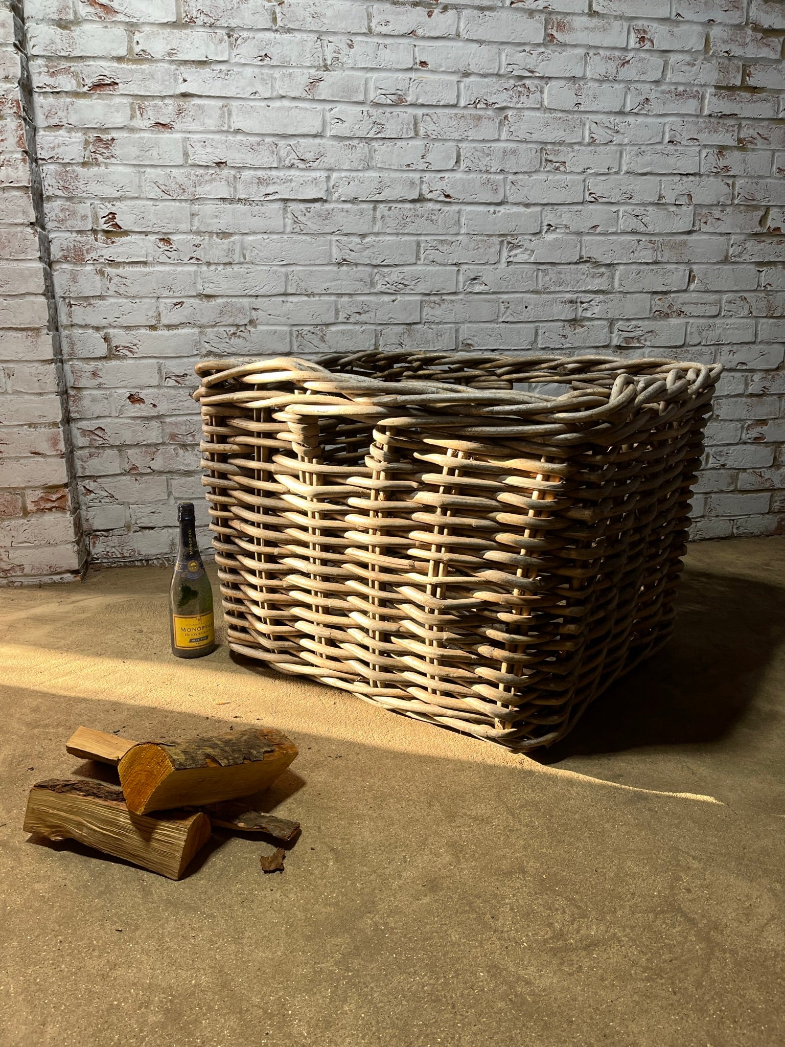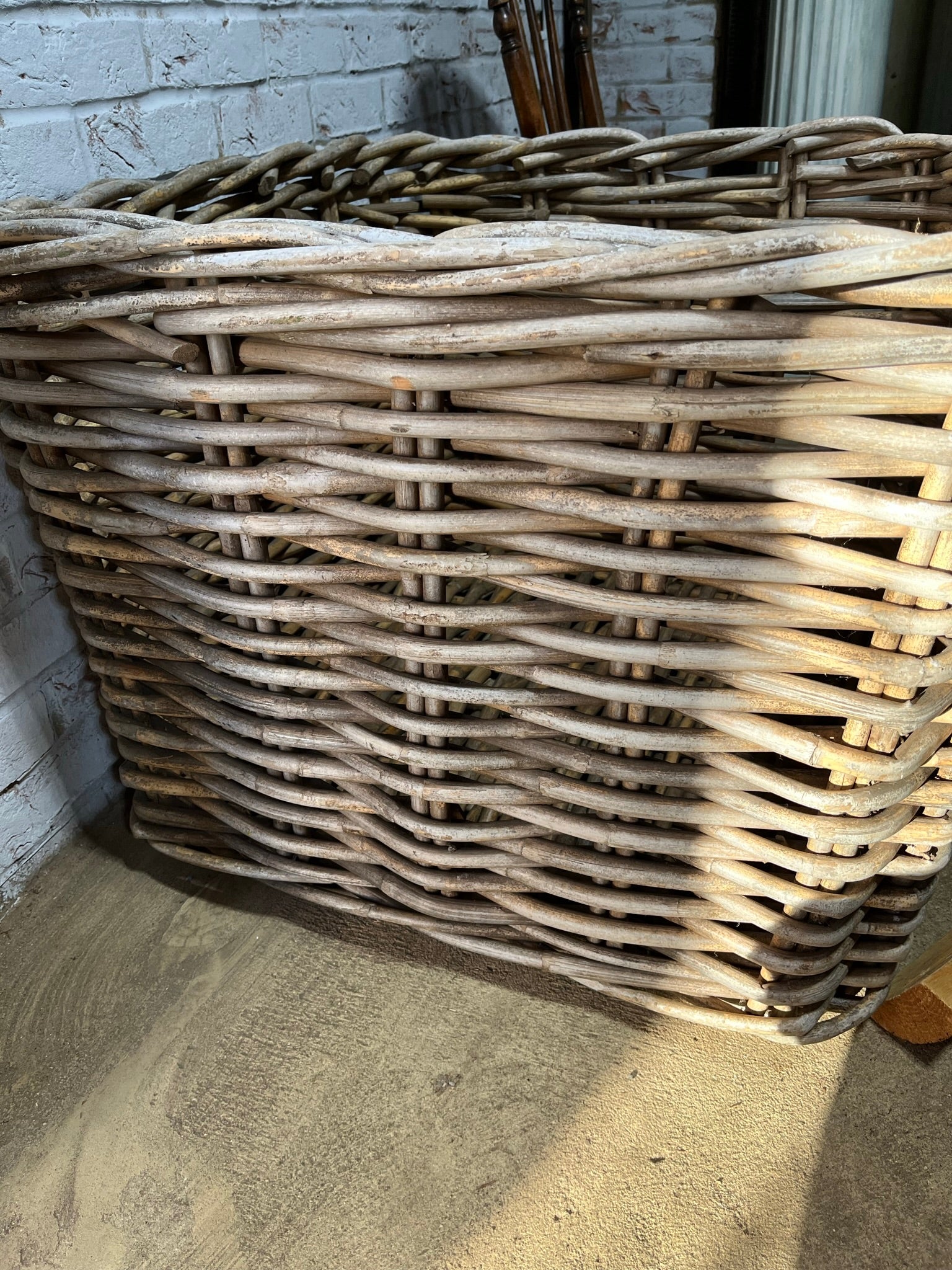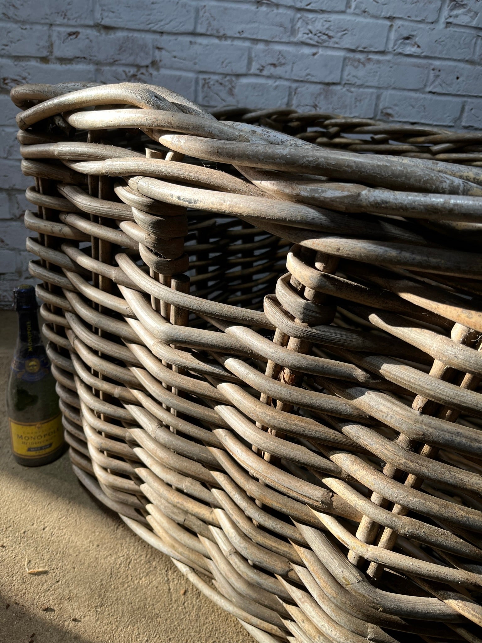 A very large country house wicker basket, perfect as a log basket, probably estate-made.