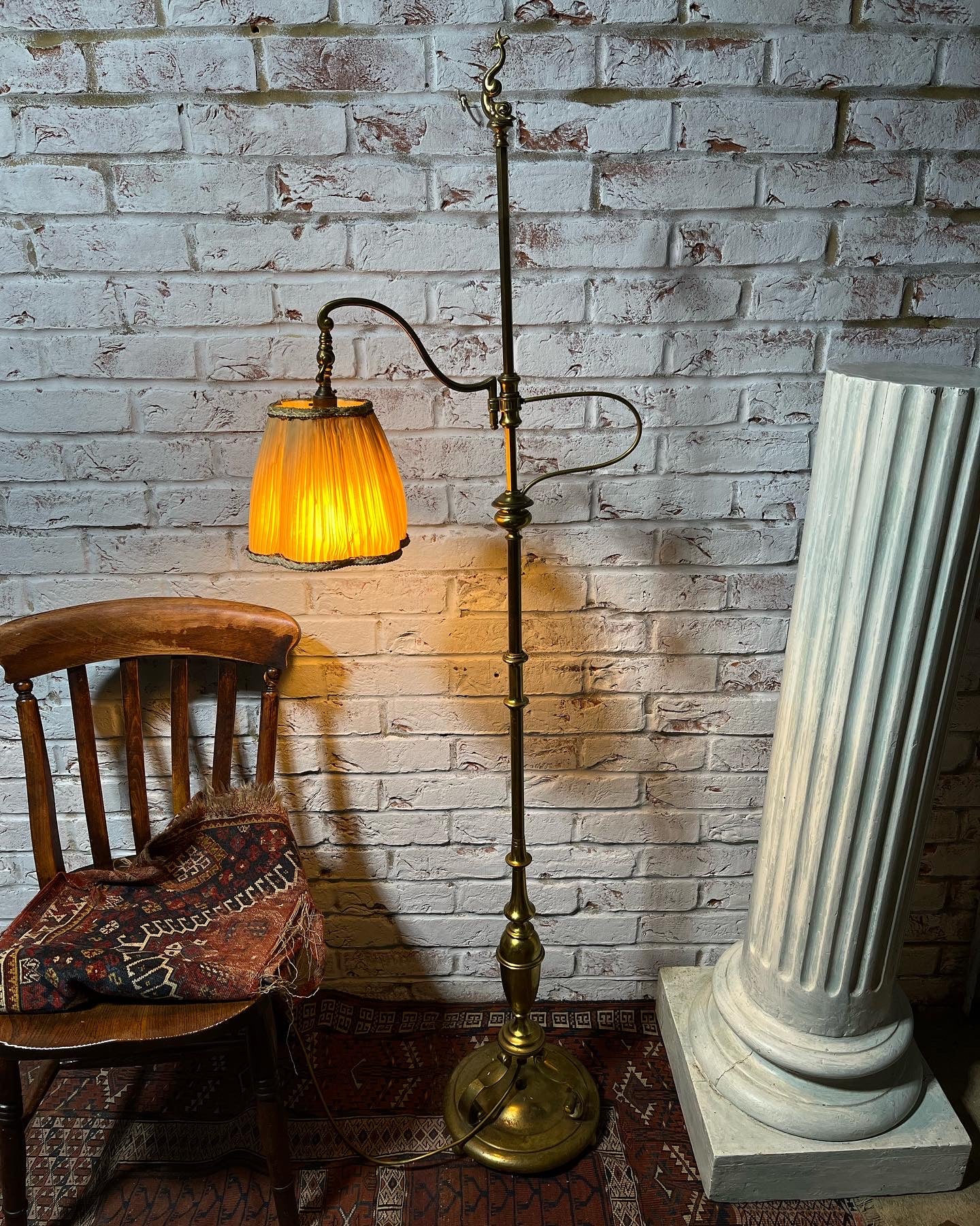 Early 20th century brass adjustable standard lamp or reading lamp.