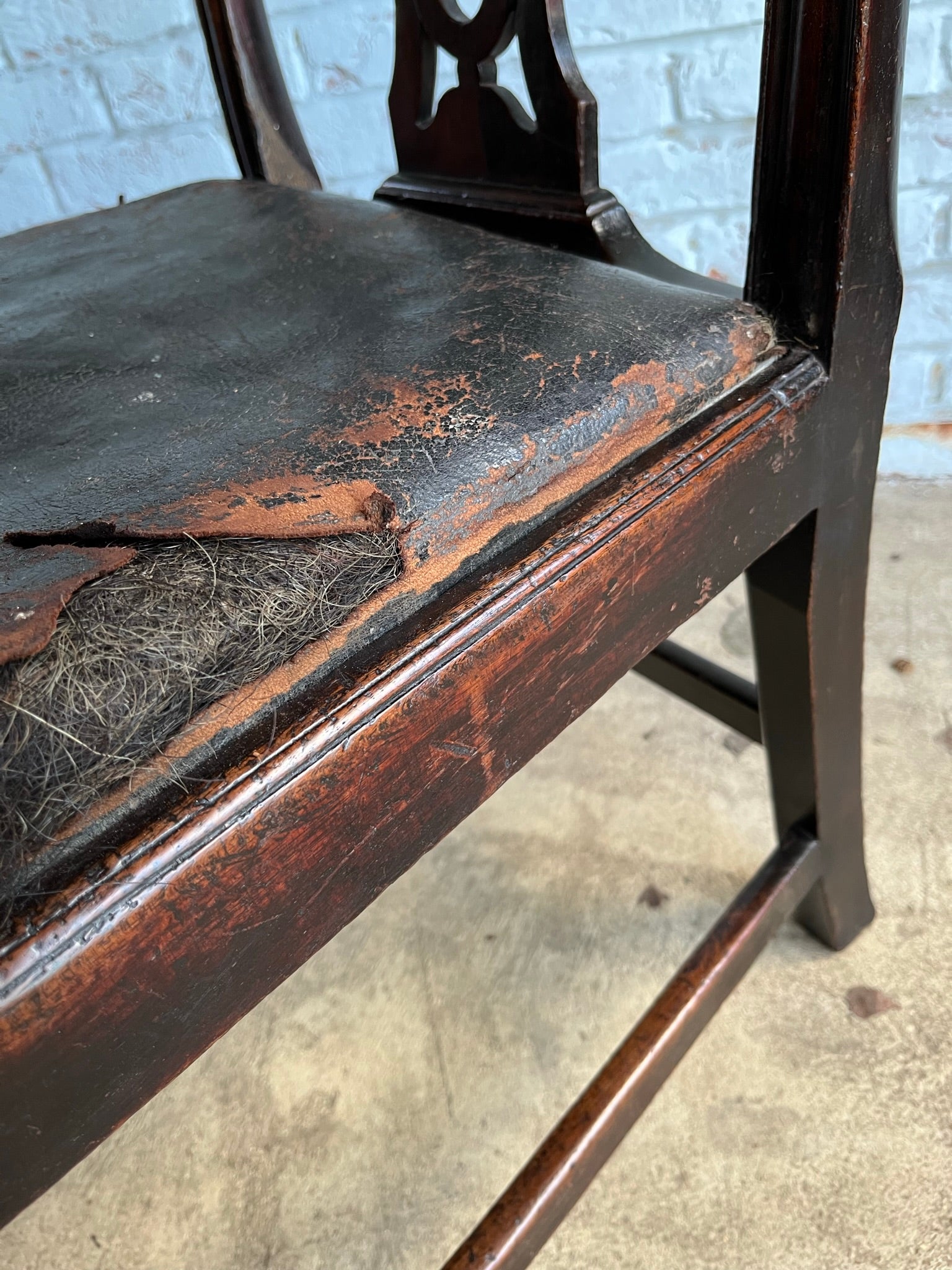 A superb large 18th century George III mahogany dining chair, with what looks like the original leather horse hair-filled seat.