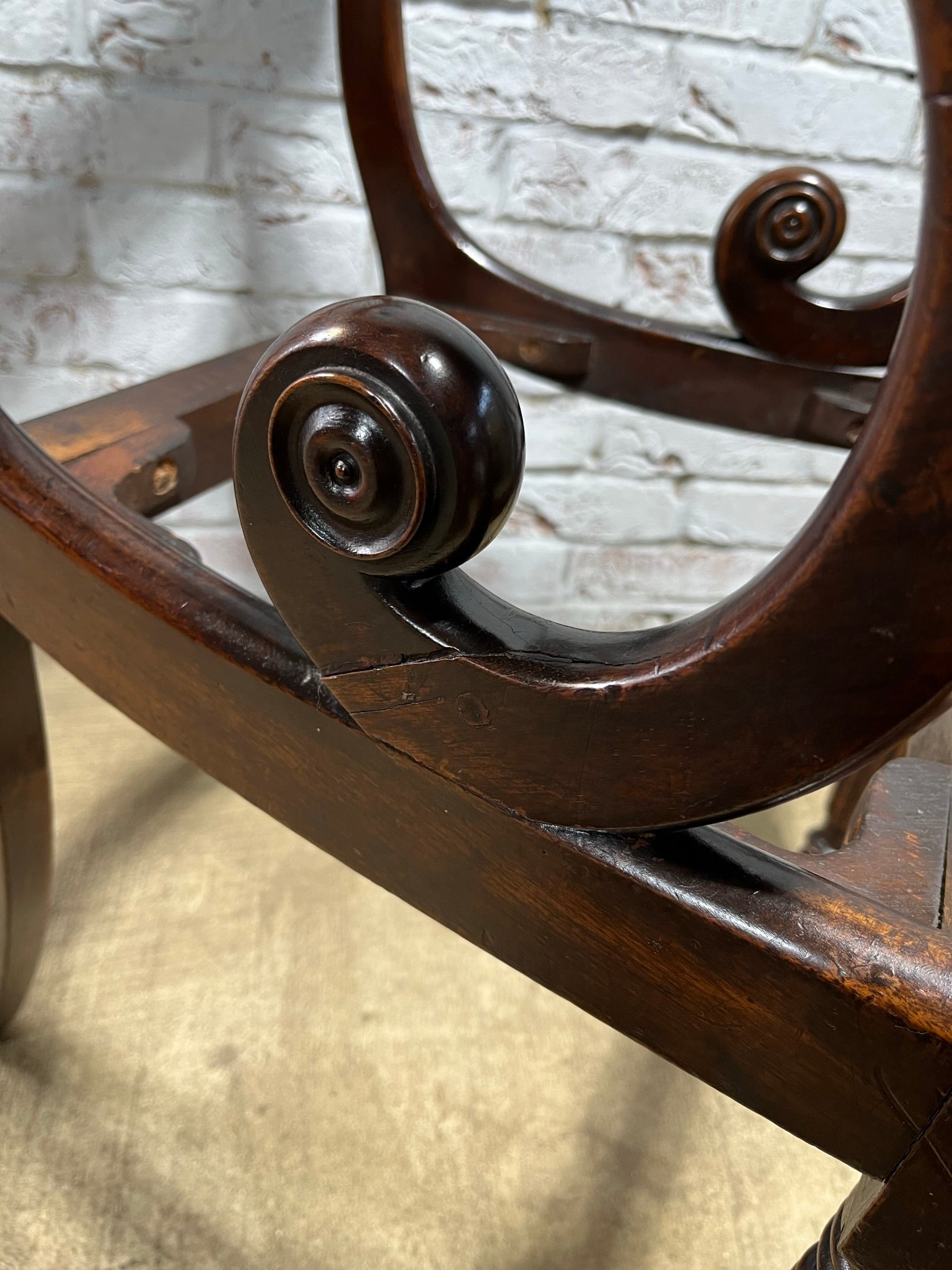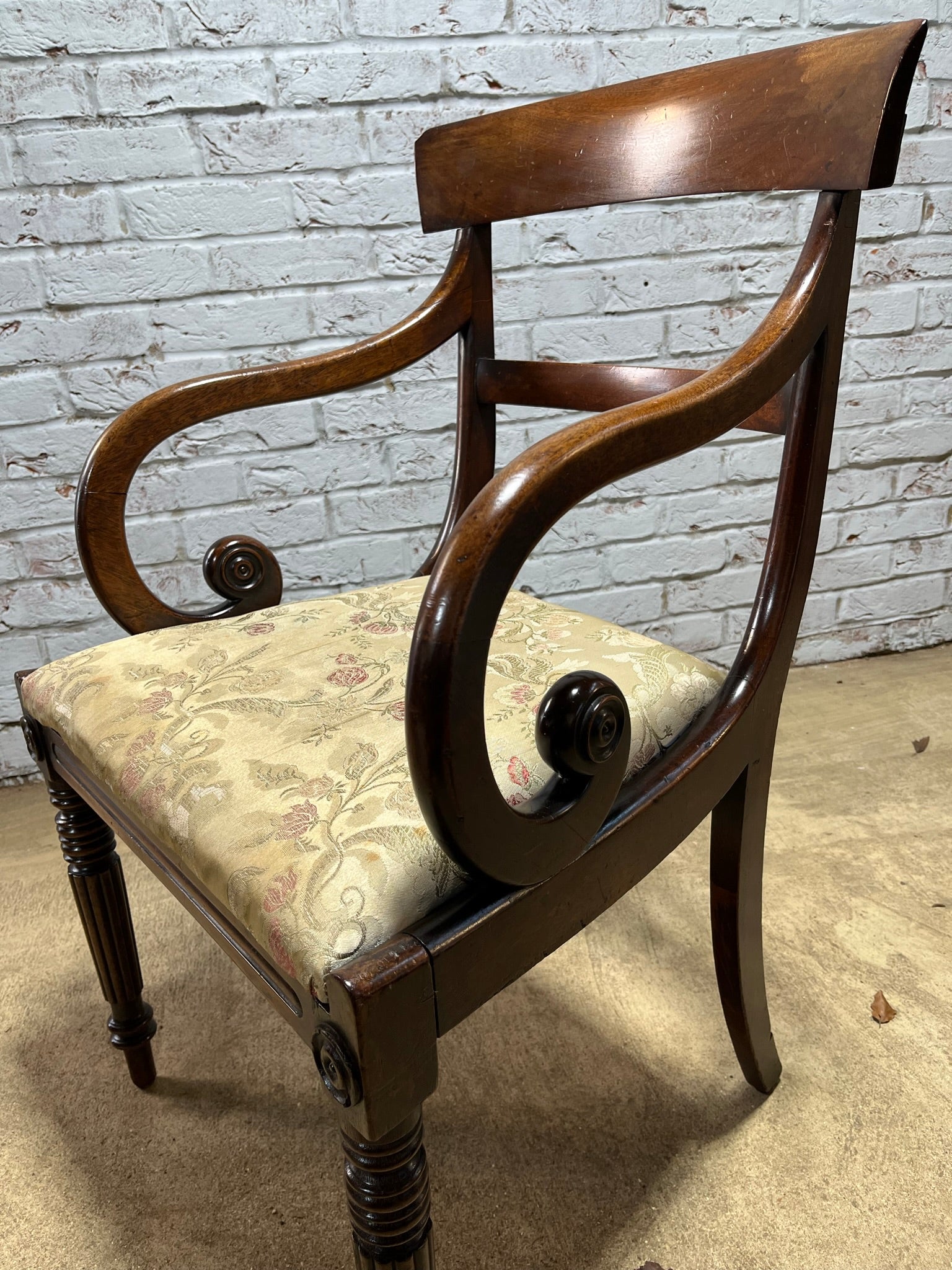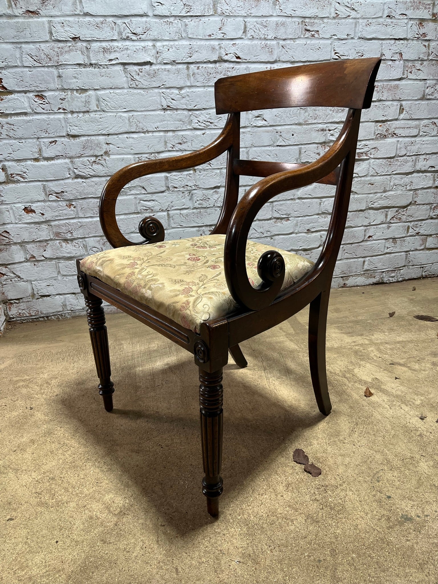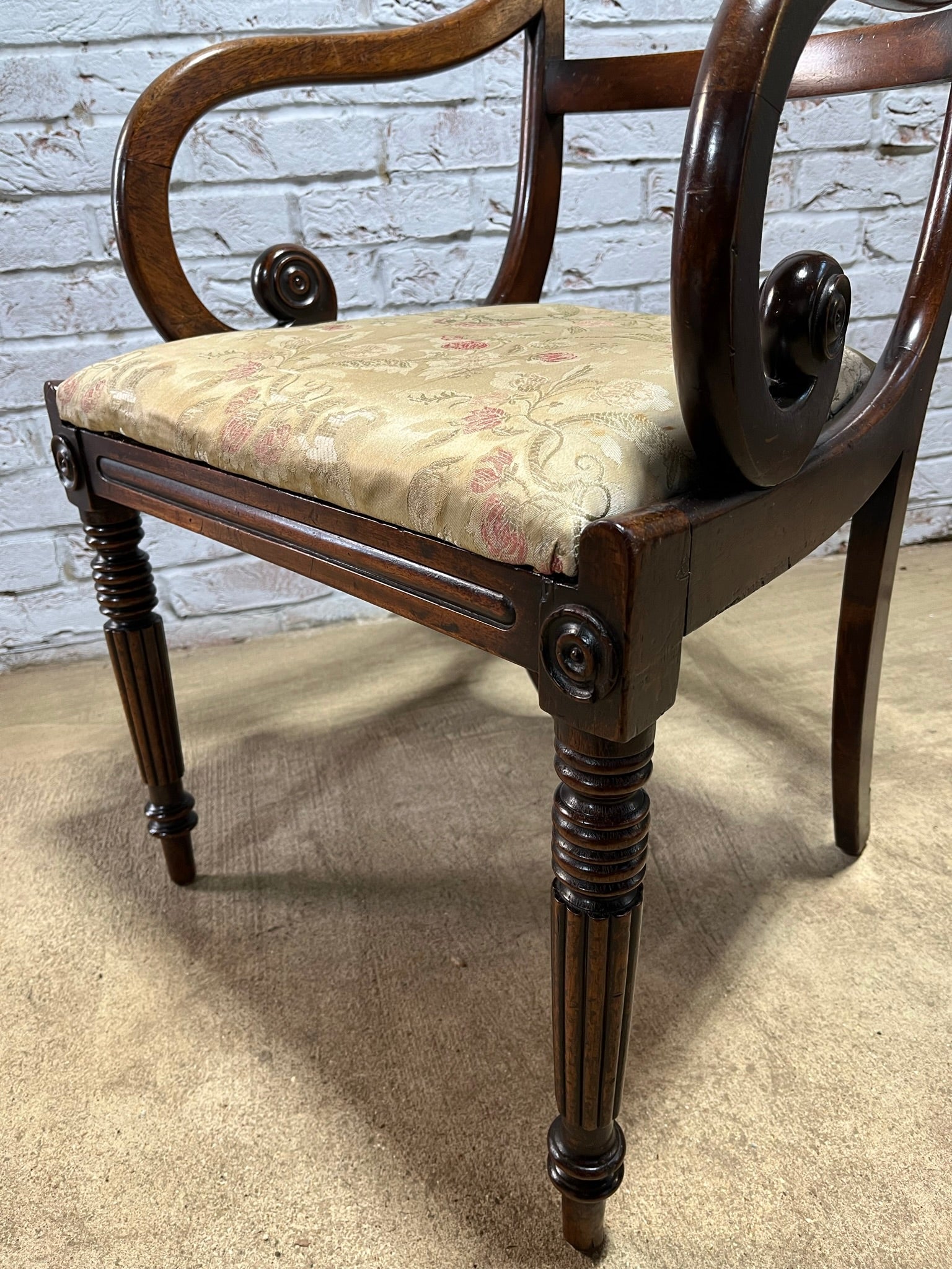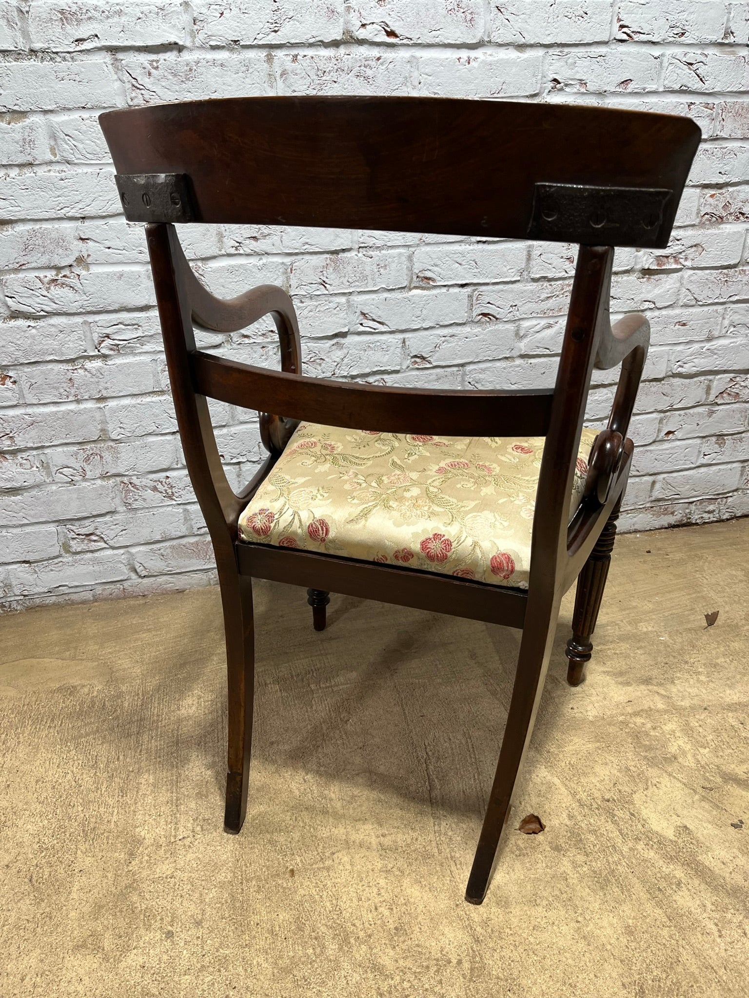 A pretty mahogany Regency armchair or elbow chair, circa 1820, with later upholstery.