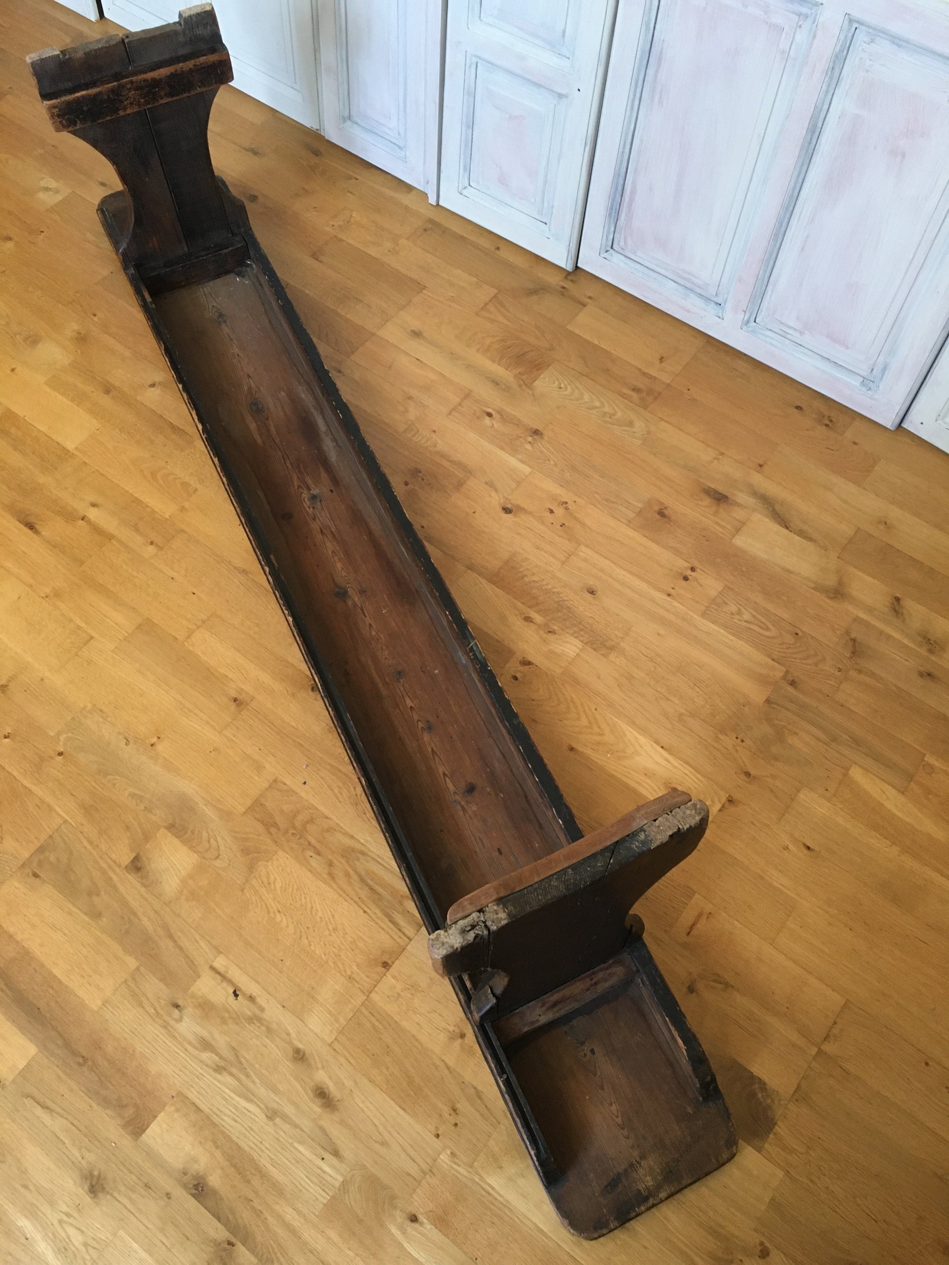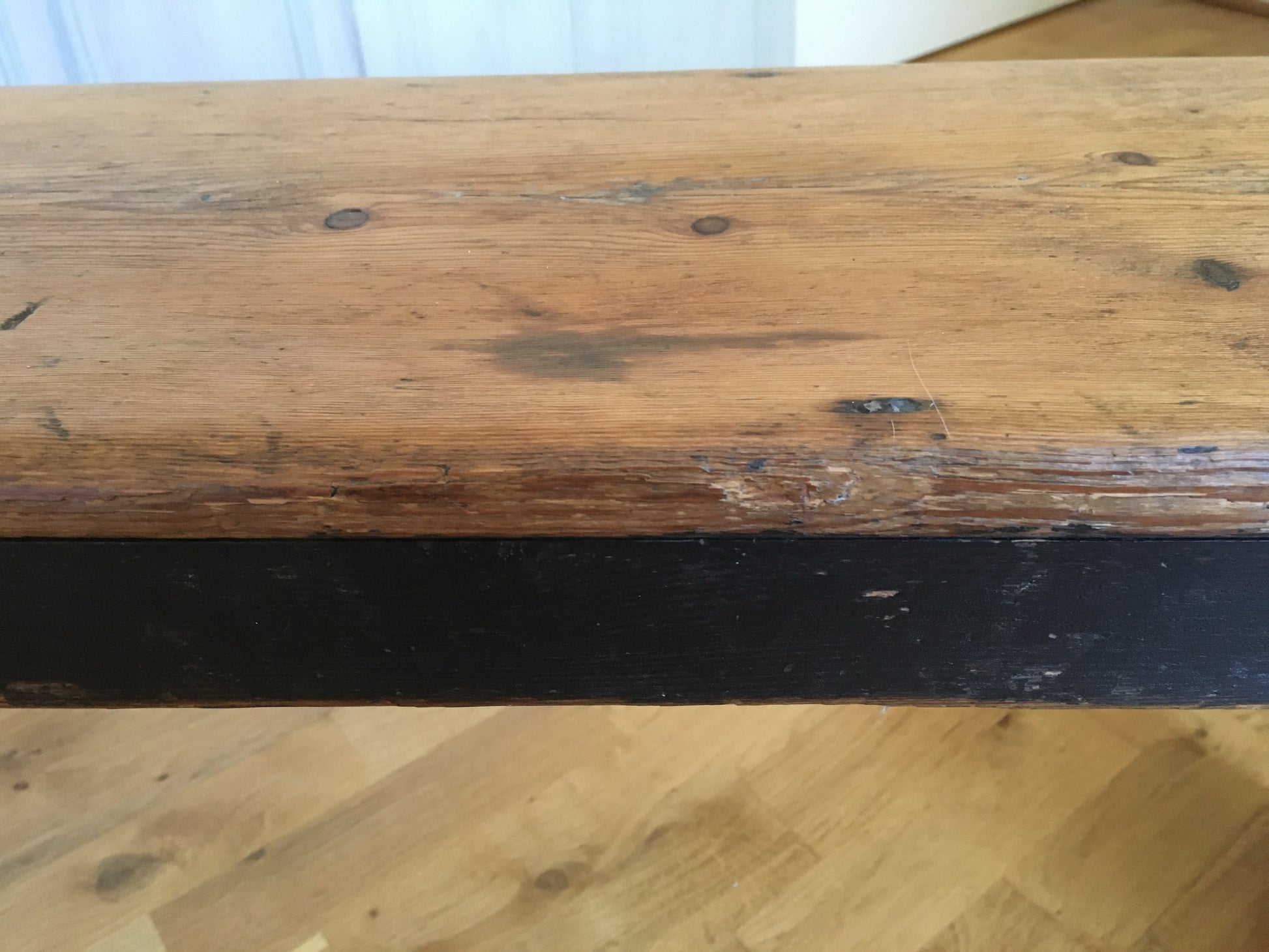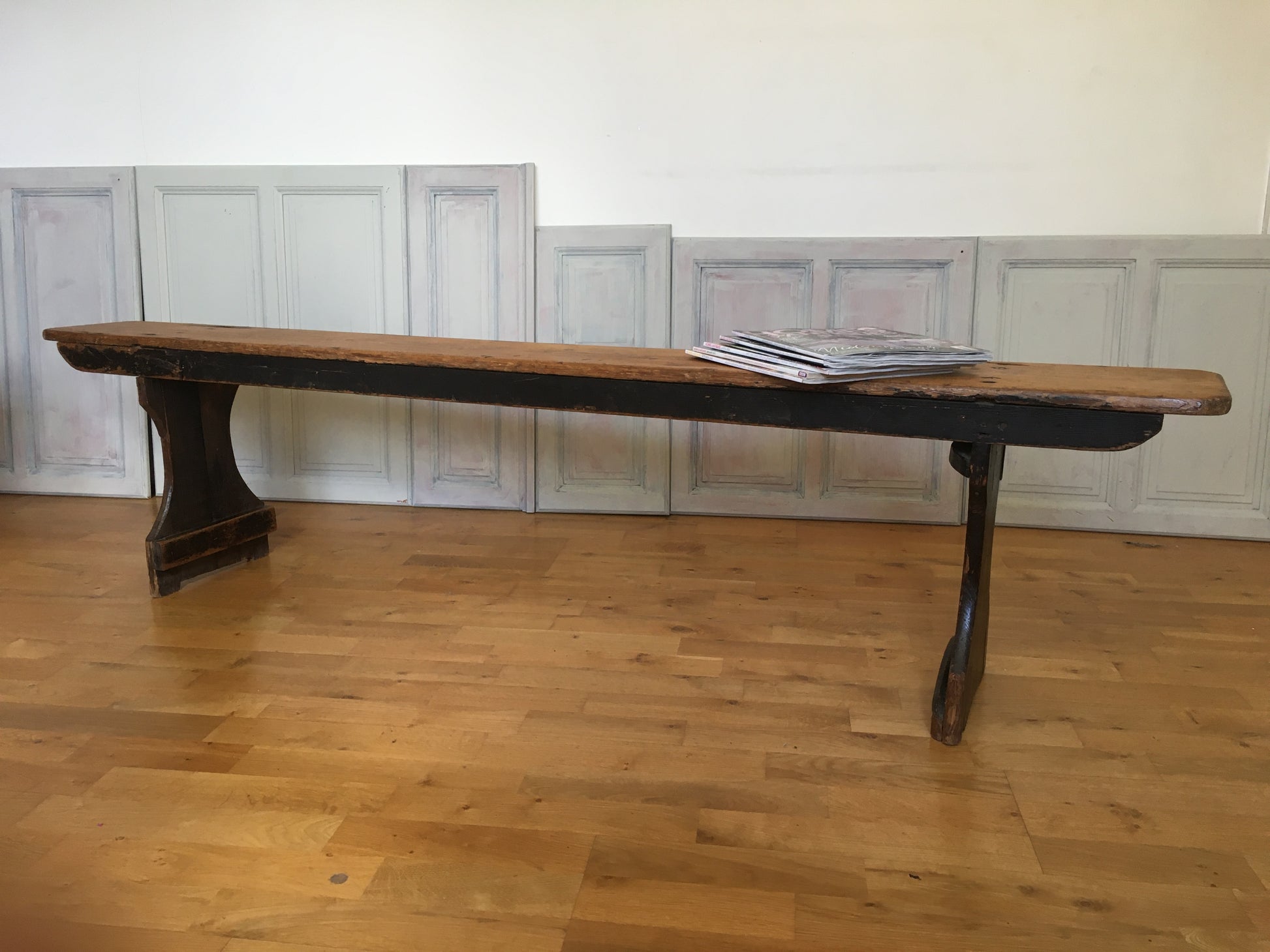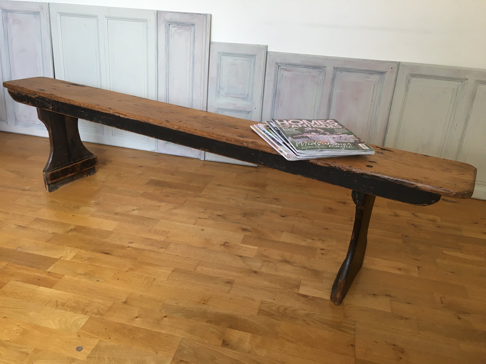 Useful Victorian pine bench with what looks like the original paint still on the supports and edging.
