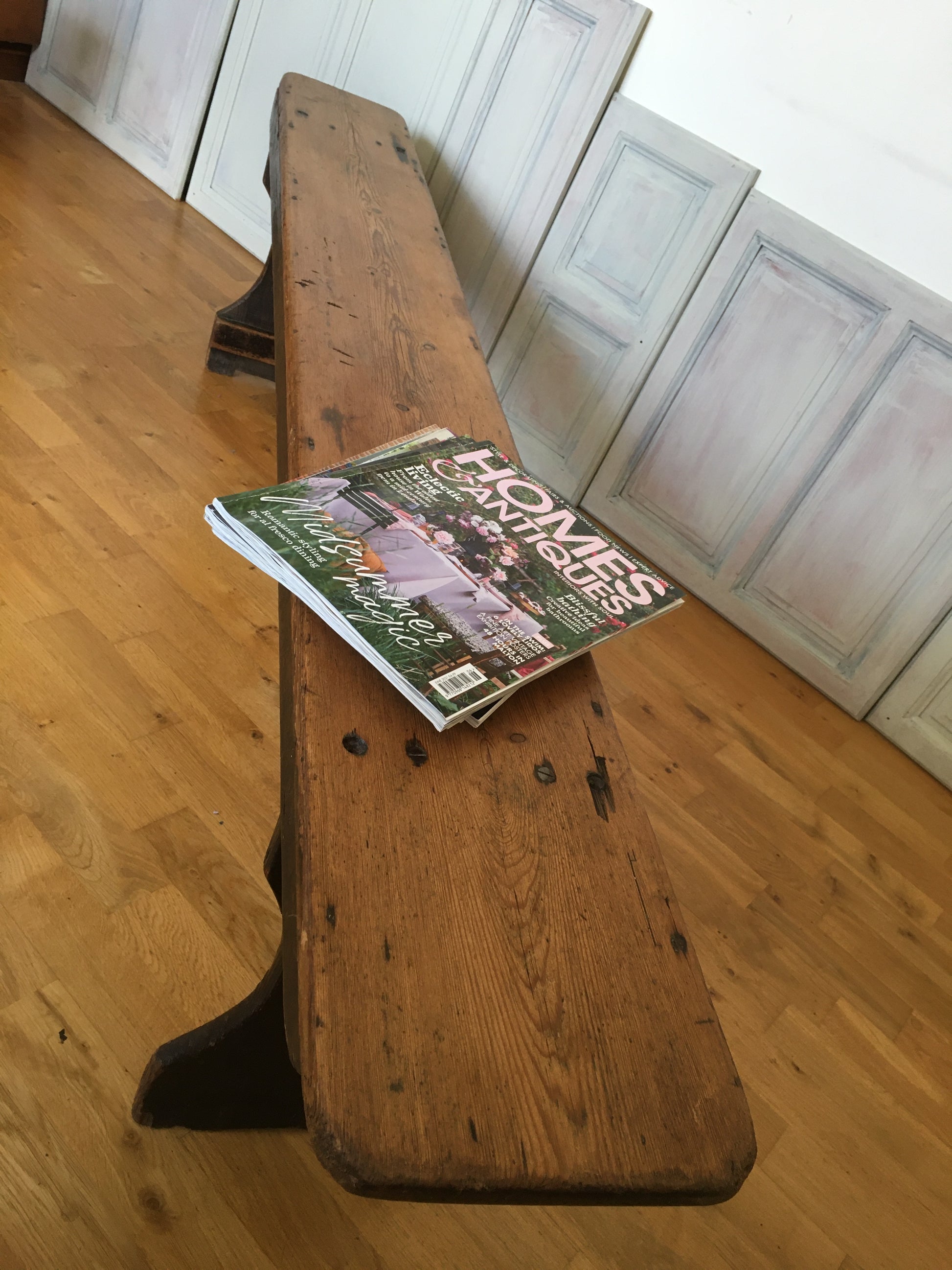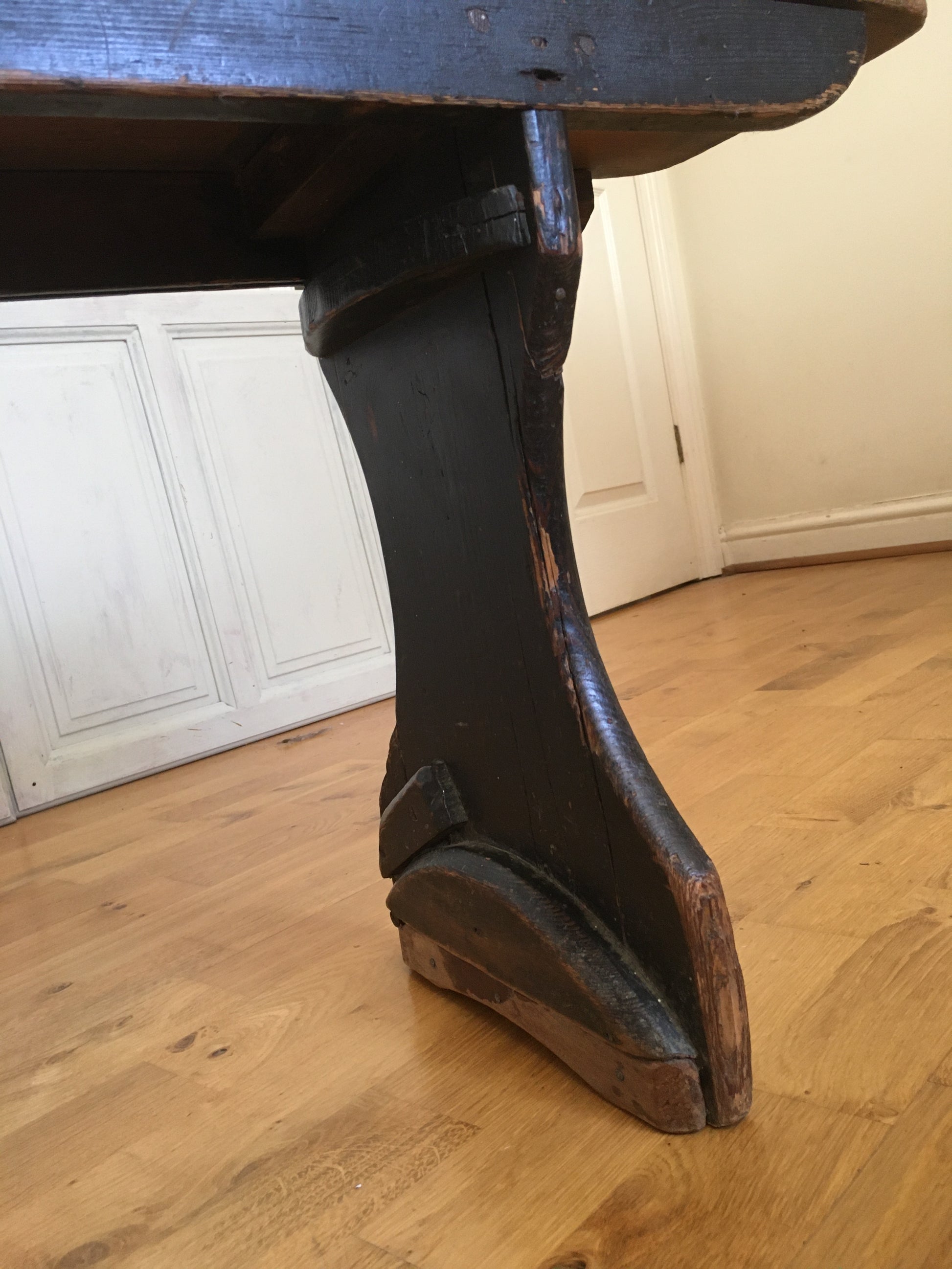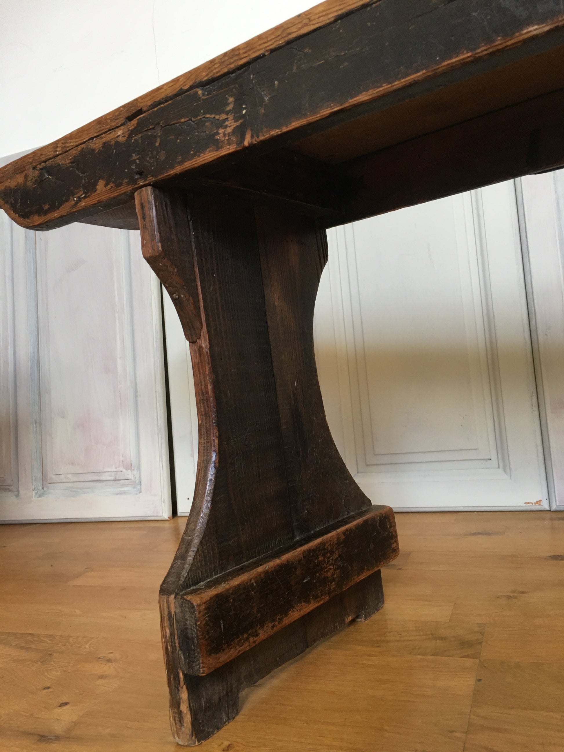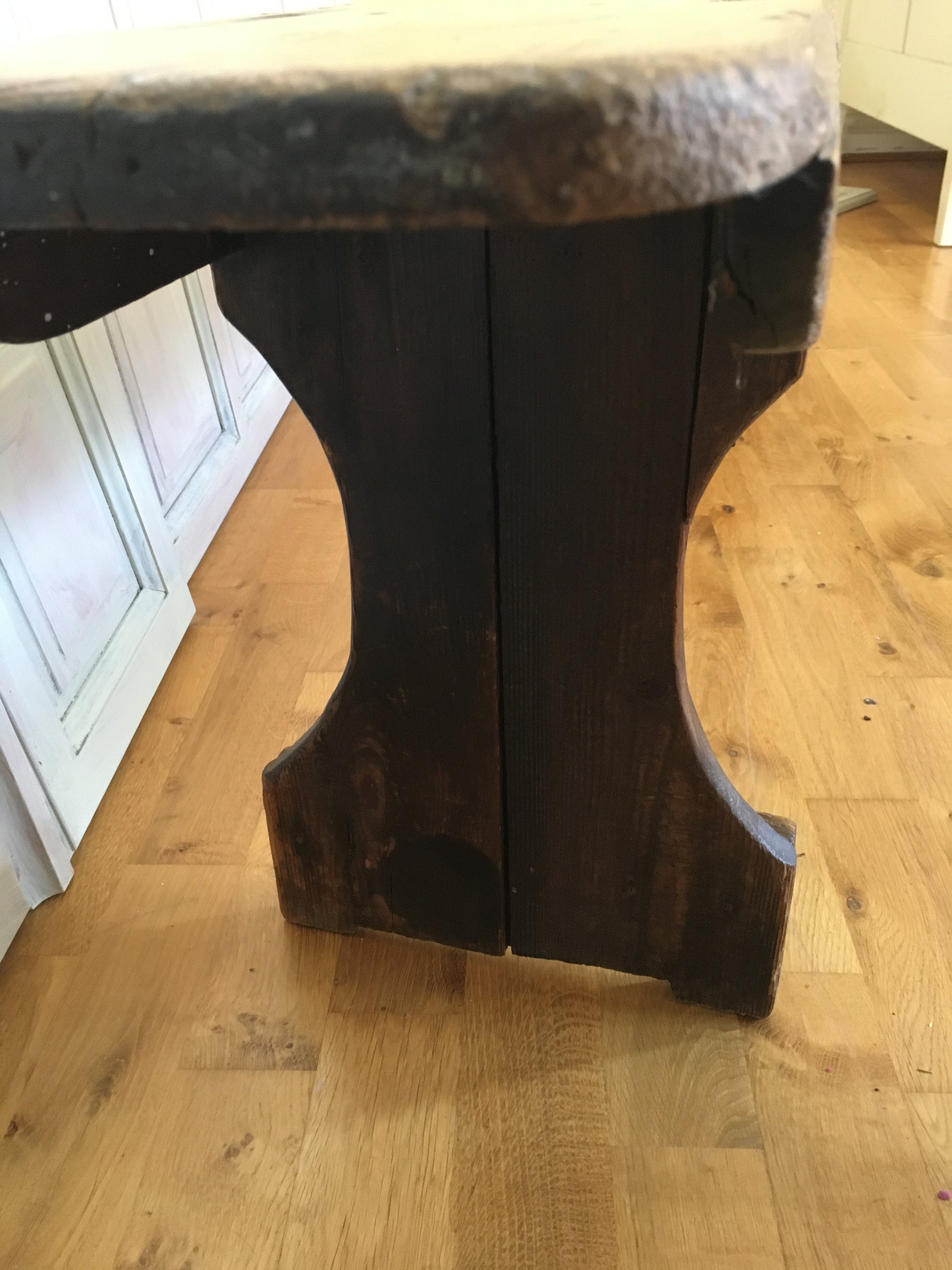 Useful Victorian pine bench with what looks like the original paint still on the supports and edging.