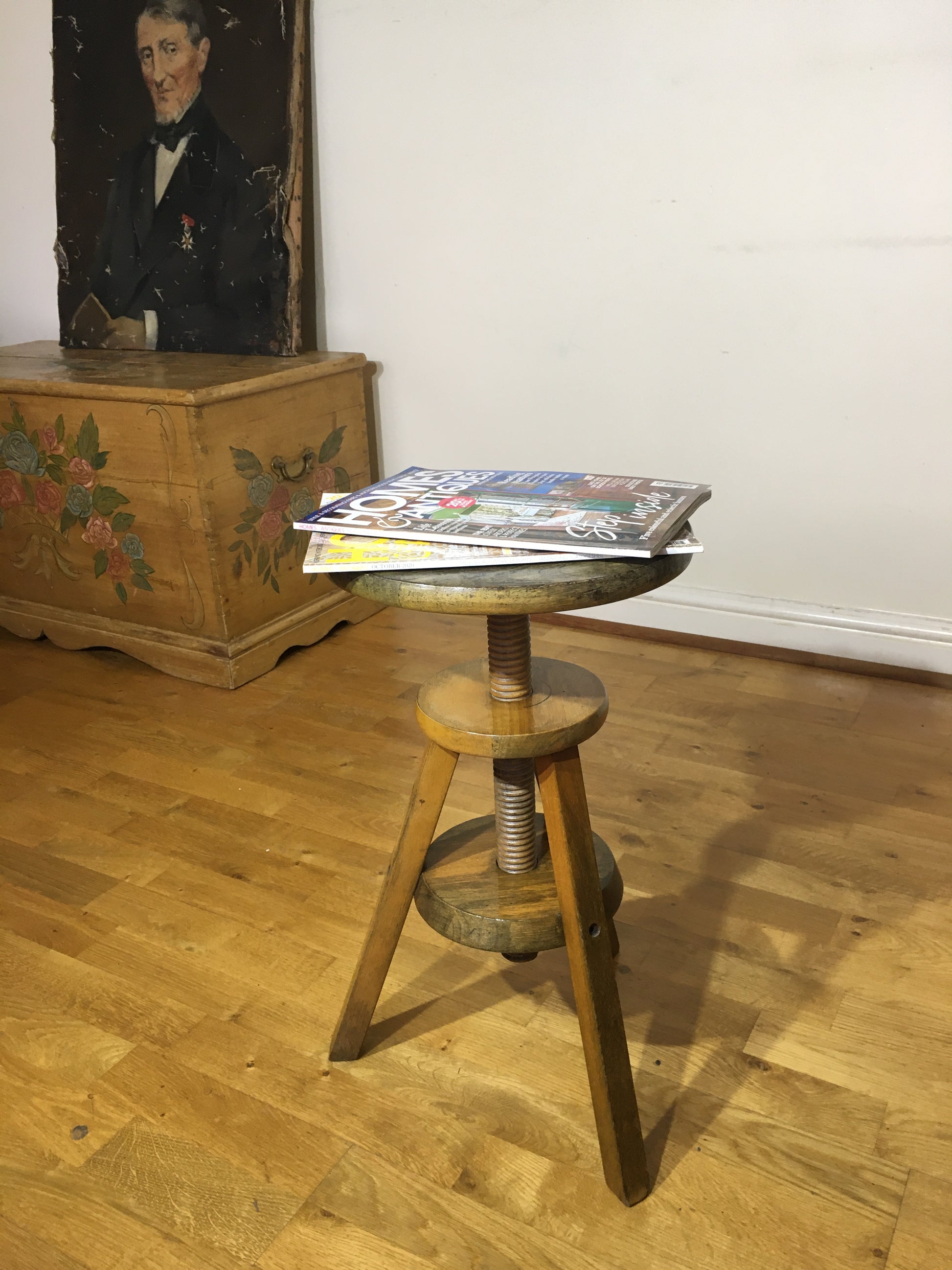 Works well as a drinks/lamp/book/bedside table as it's height-adjustable and rotates, but can also be used as a stool of course.