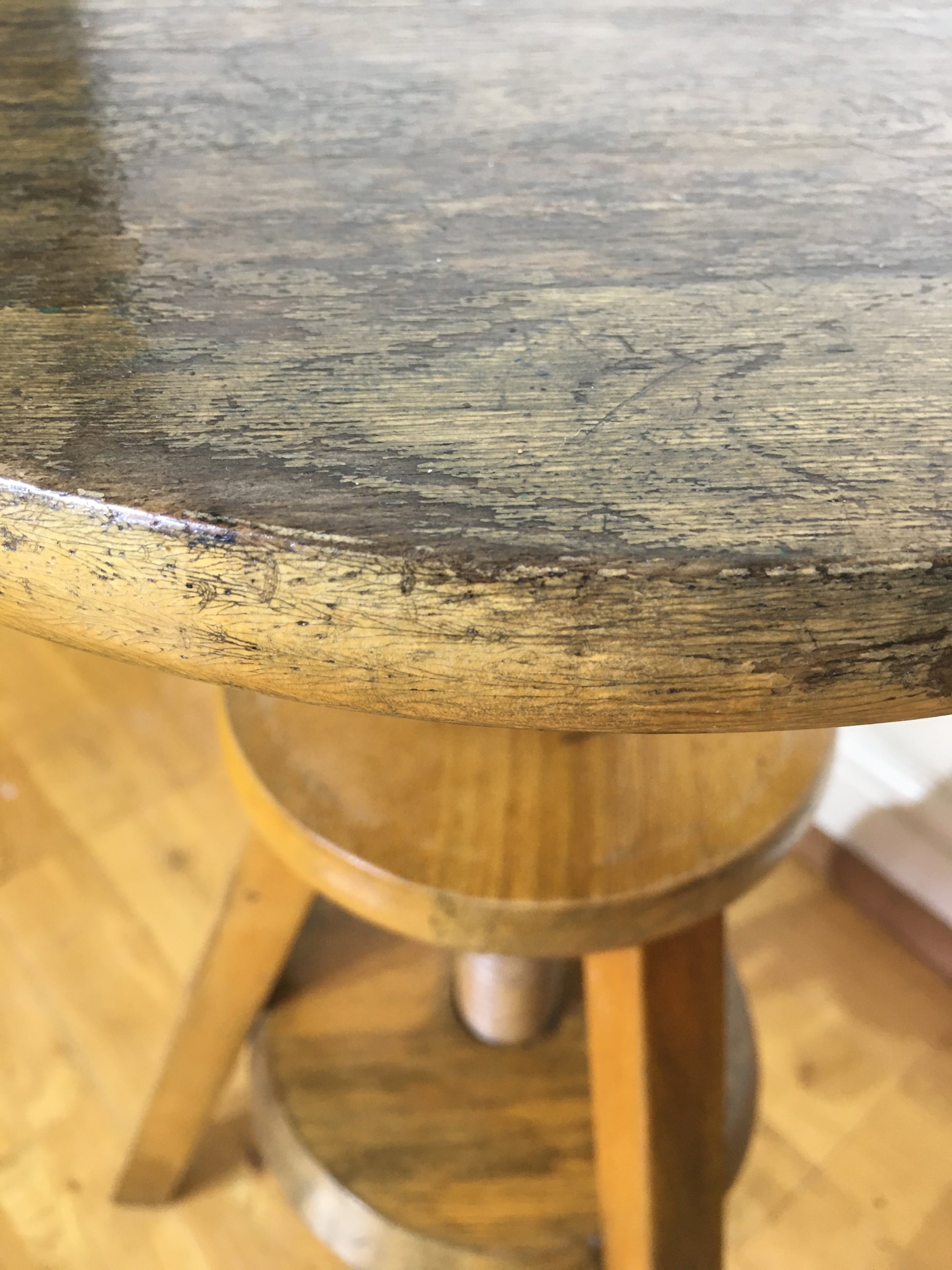 Very good, sturdy, no wobbles or worm. The expected wear and tear with the varnish on the top especially worn creating a nice patination - see photos.